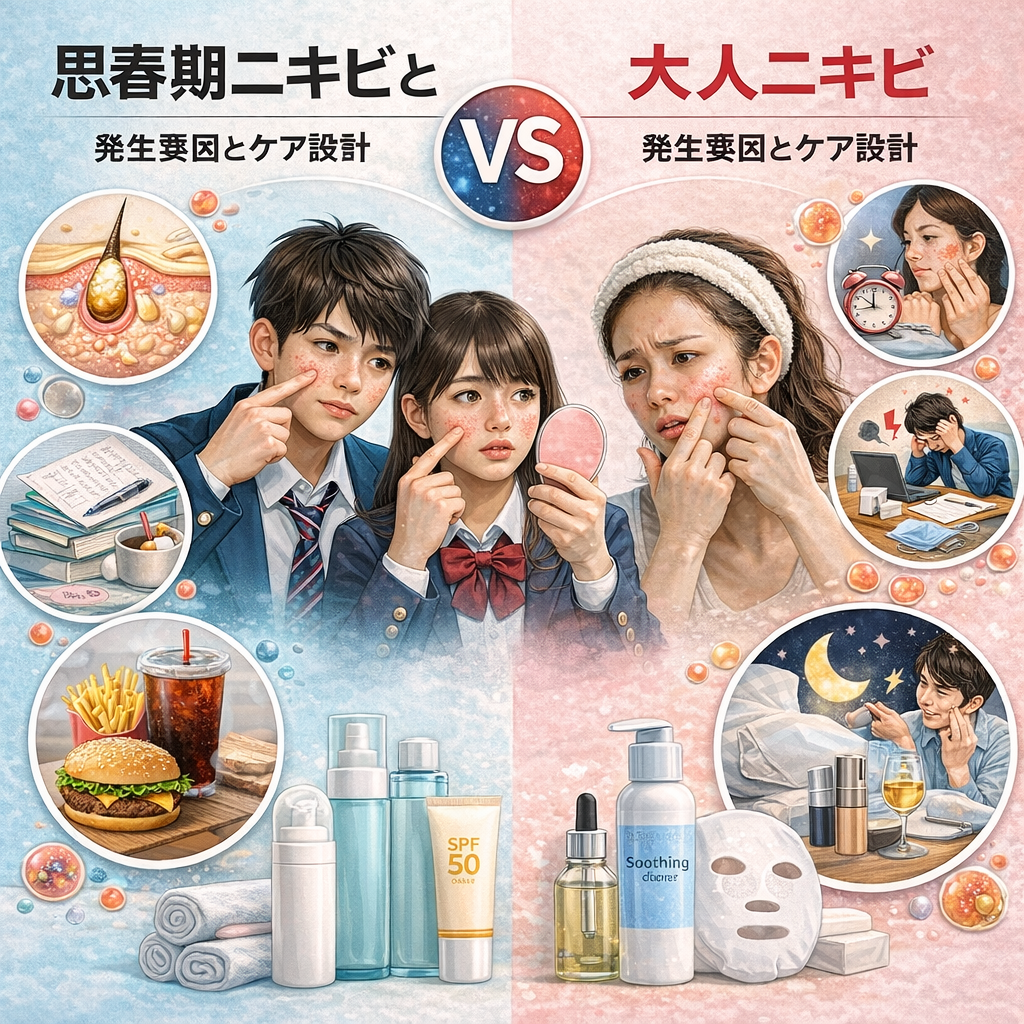 思春期ニキビと大人ニキビの違い:発生要因とケア設計